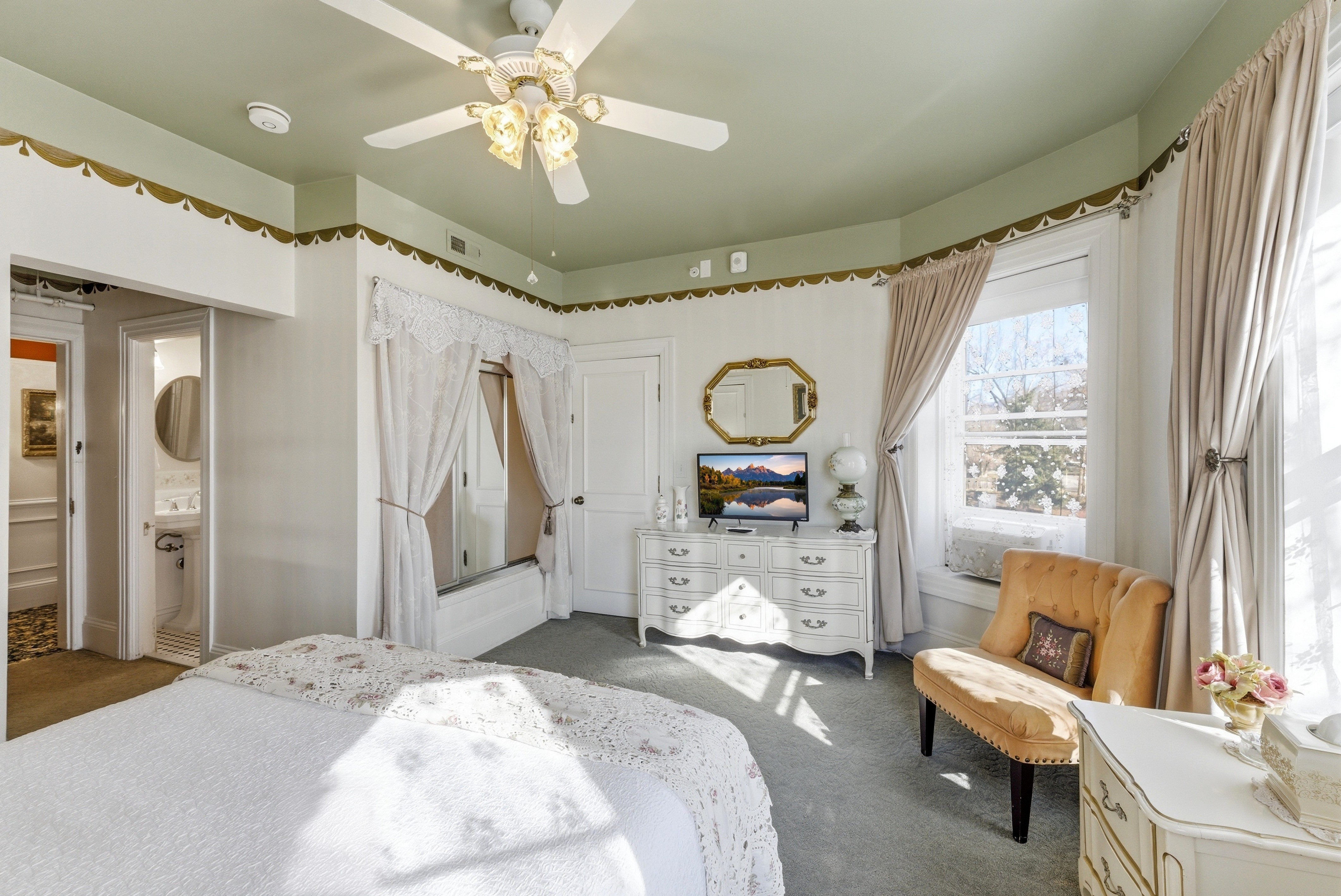 Equipped with east-facing windows that flood the space with morning light, a whirlpool tub, walk-in closet, and a reading area designed for those who love getting lost in literature.